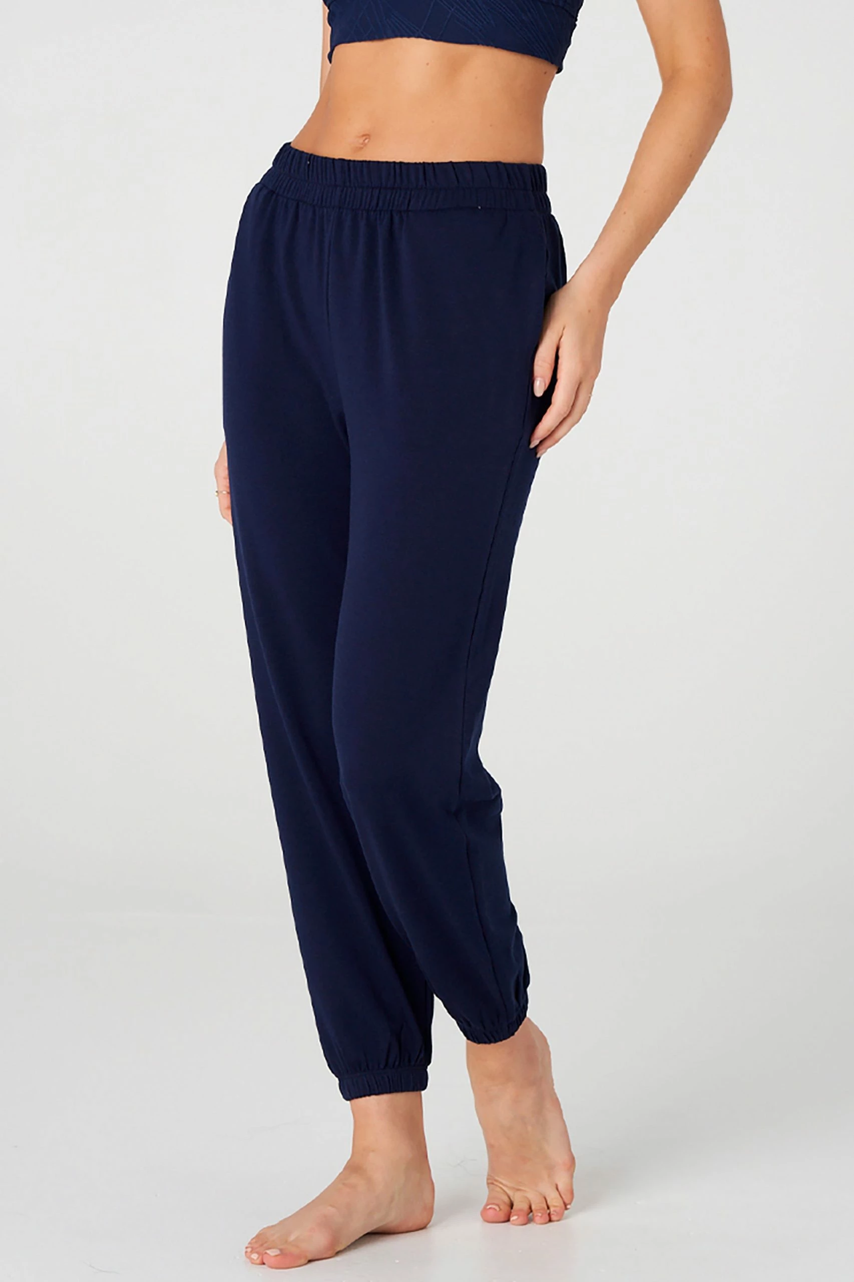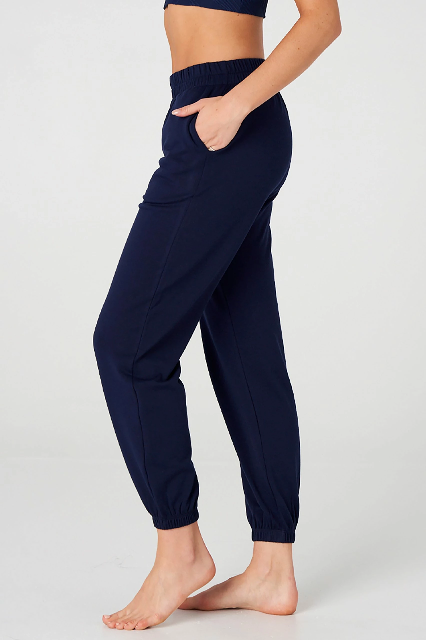 Look no further for the perfect sweatpant. Extra cozy yet still flattering, this super soft fleece style is sure to become your new favorite lounge piece! With pockets to store your essentials and an elasticized waistband and cuffs, rock these for added comfort when running errands, or thrown on over your leggings for extra warmth or as a coverup after class.