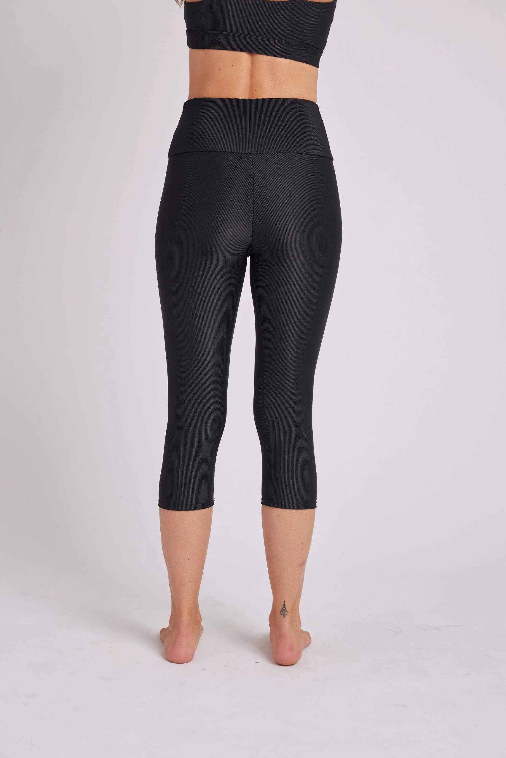 They’re back! The capri pant is making a comeback in a big way and our High Rise Rib Capri’s are a great way to spice up your wardrobe. Featuring our dynamic performance ribbed fabric and a high-rise waistband, they are designed to be form-fitted and will stretch and move with your body comfortably. For most, these capri pants will stop about mid-calf length.