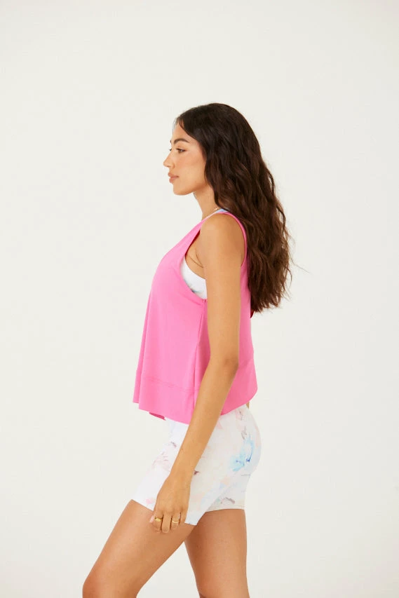 The Om Tank is a drappy v-neck sleeveless tank that can be worn traditionally in the front or reversed for a more open look. Made from a jersey spandex blend that is super soft and comfy!