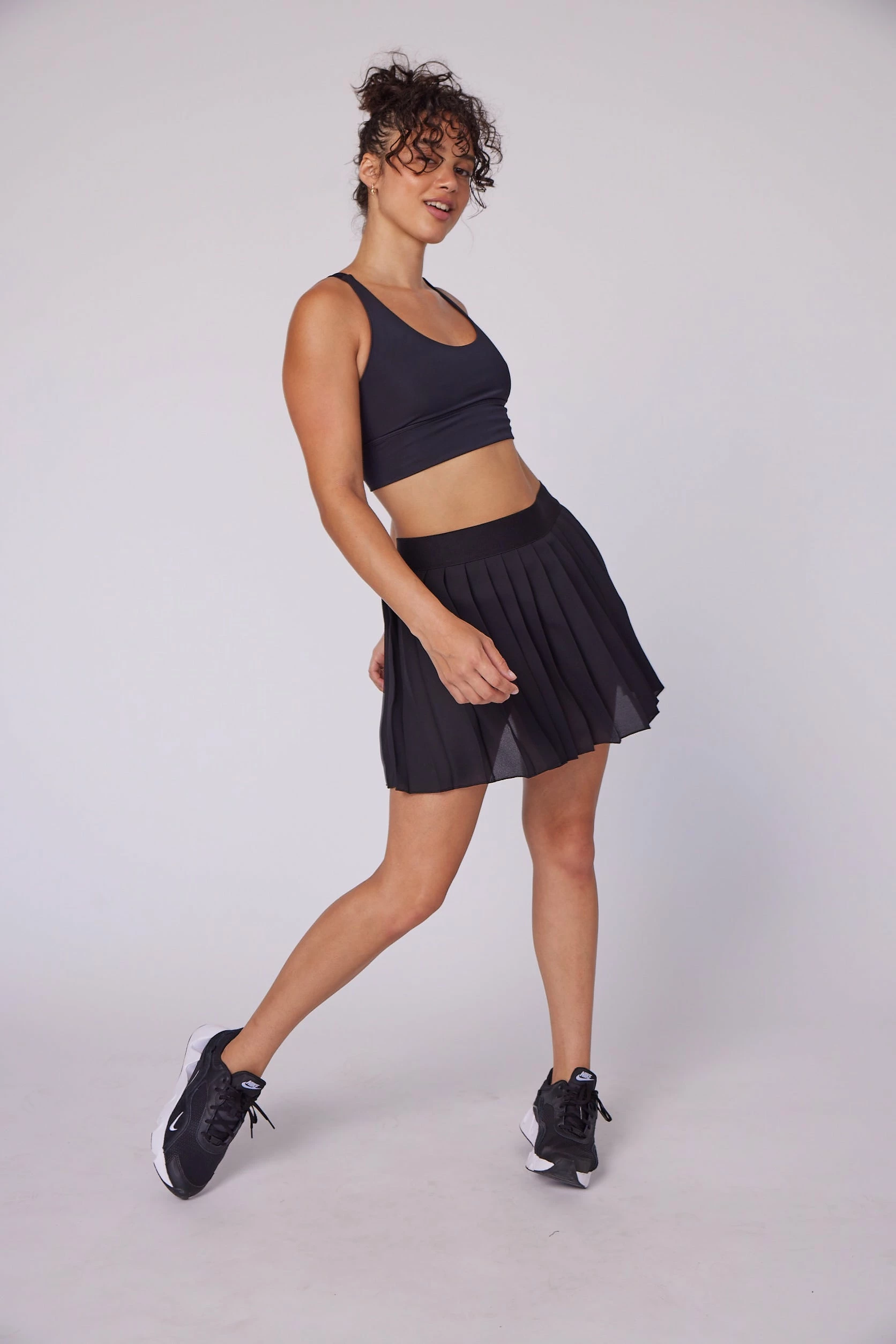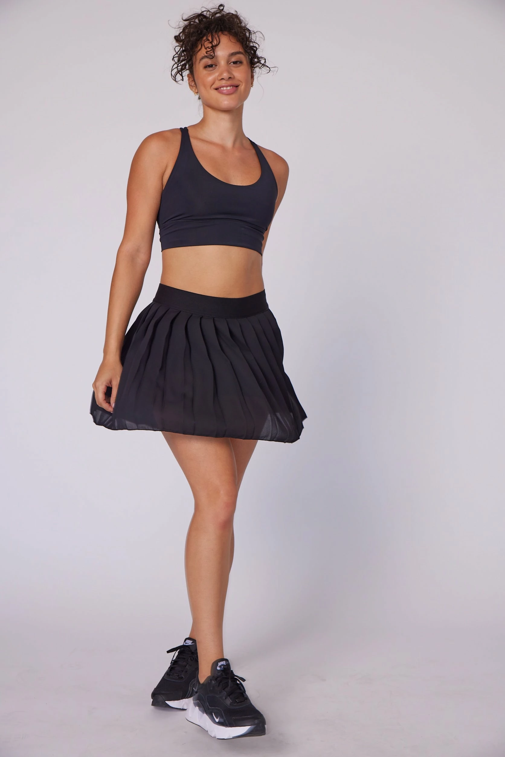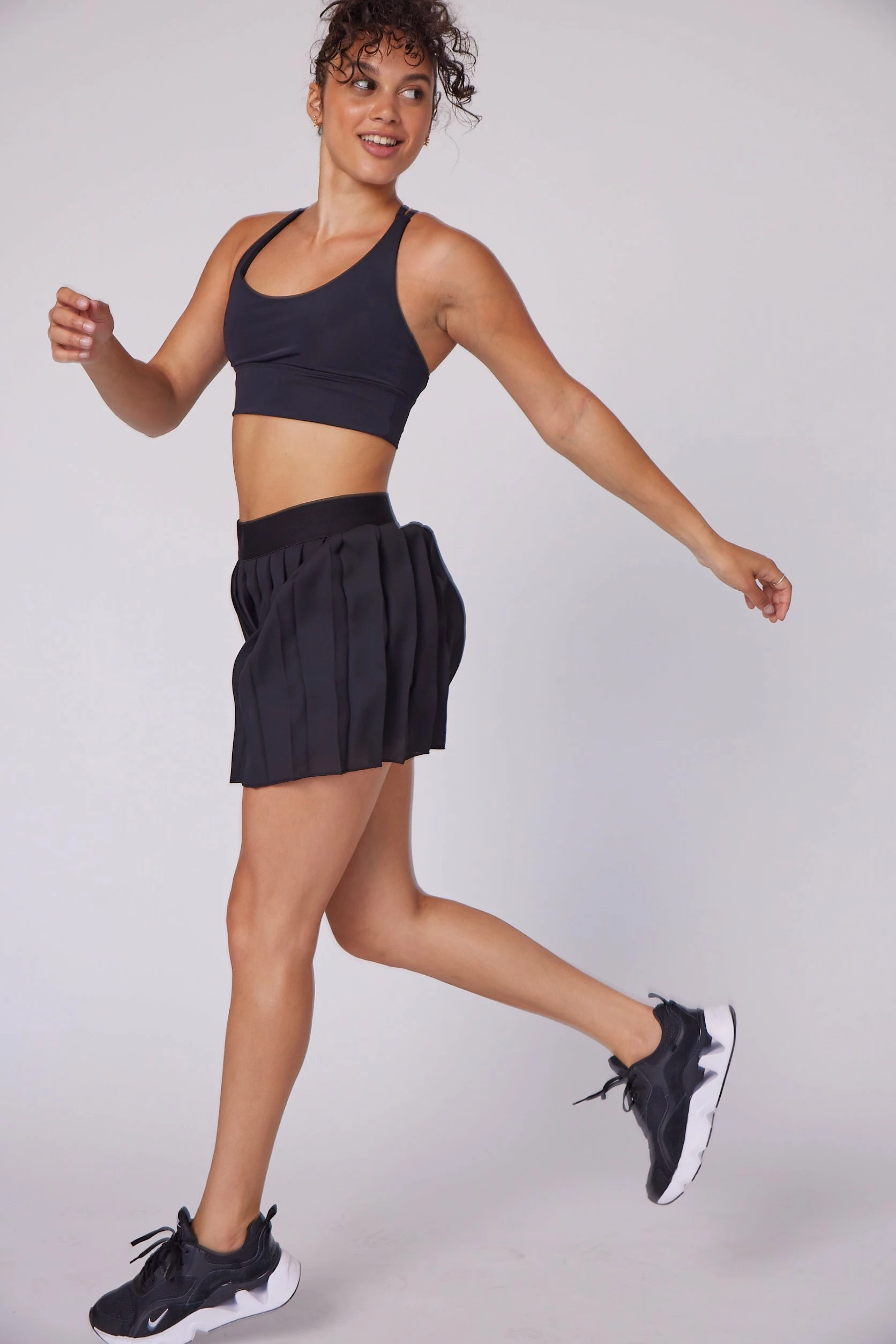We’re fangirling over this style! Feminine and flowy, the Pleated Tennis Skirt is a high-waisted lightweight mini skirt with compressive biker shorts underneath and cell phone pocket for versatility and built-in support to keep you covered while on the move!