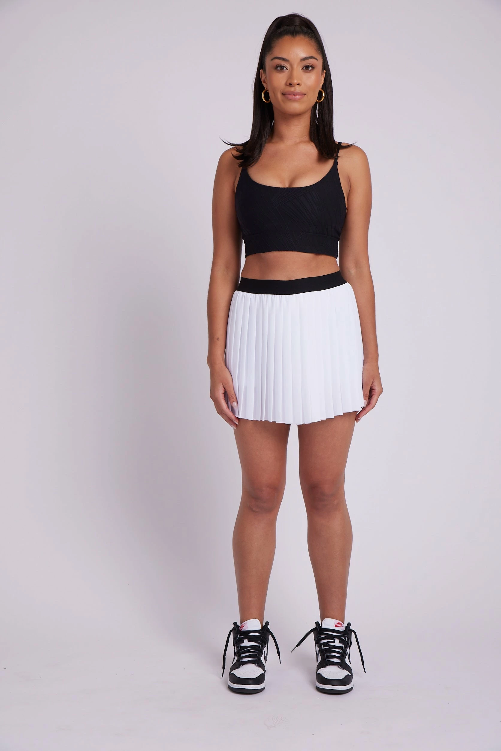 We’re fangirling over this style! Feminine and flowy, the Pleated Tennis Skirt is a high-waisted lightweight mini skirt with compressive biker shorts underneath and cell phone pocket for versatility and built-in support to keep you covered while on the move!