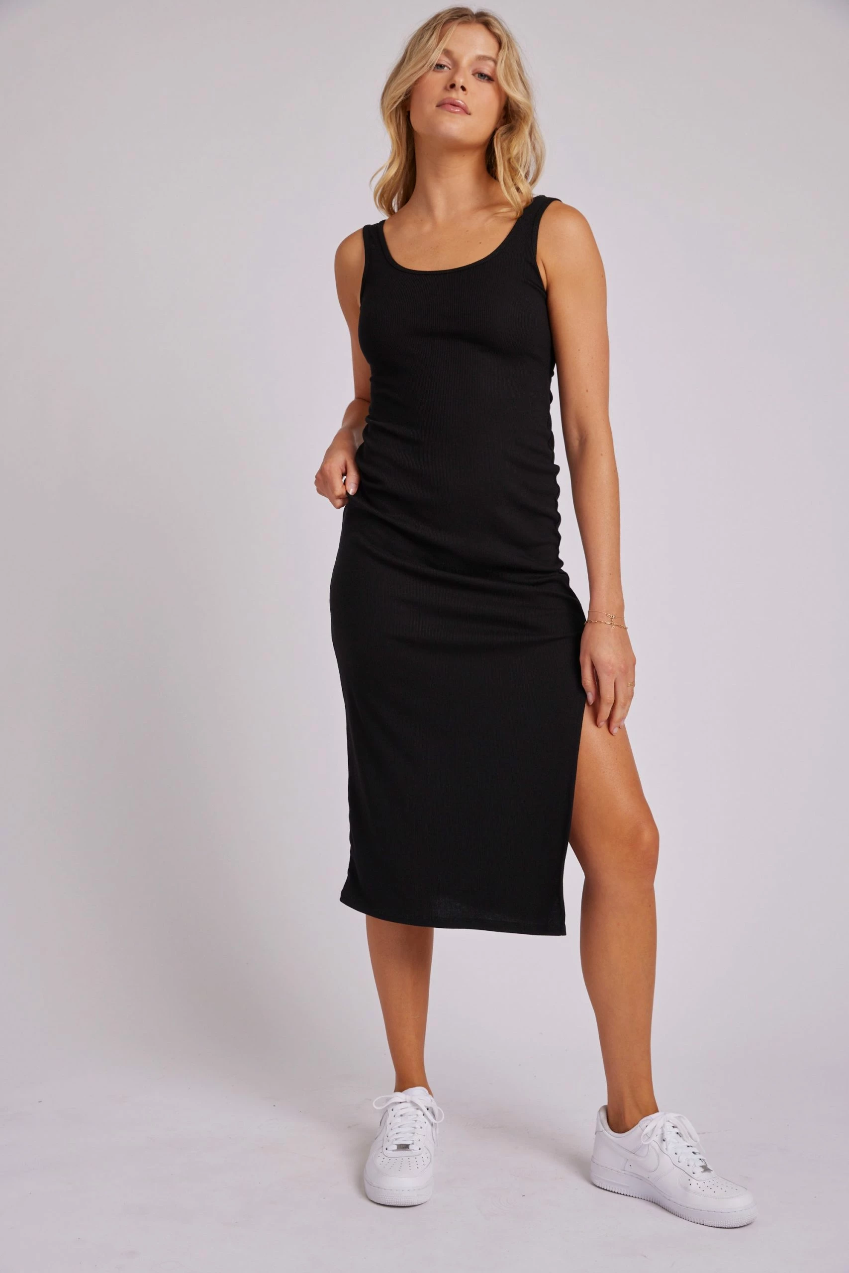 The Slit Maxi Dress is a fitted, sleeveless, scoop neck, tank dress featuring our soft and lightweight core rib fabric. This dress is the essential everyday piece that you can style to fit any occasion. Wear with sneakers for a casual day time look, or throw on some heels to elevate your style without sacrificing comfort.