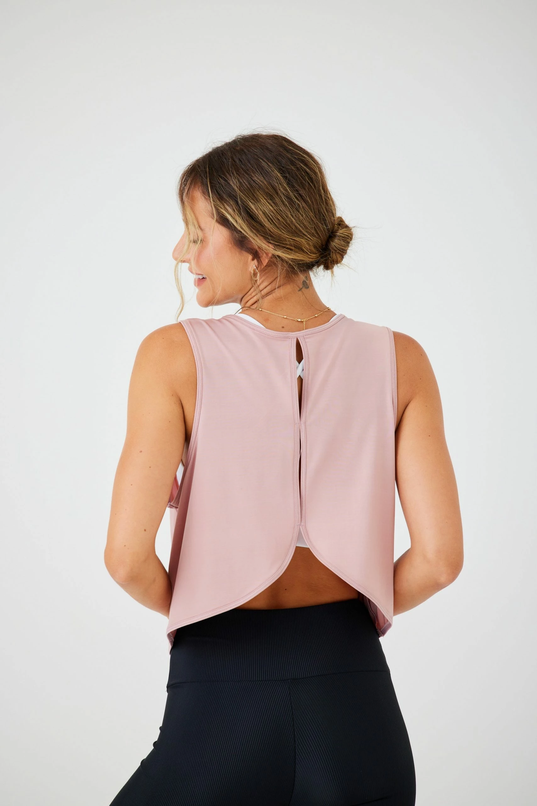 The Runner Tank is a relaxed fit, drappy, crewneck sleeveless tank top featuring our best selling glossy flow fabrication that is a quick-drying lightweight spandex/jersey blend you can wear in the hot room over one of our Bra Tops or as a cover-up piece after class. With an adorable tulip shaped hem, this style is both feminine and functional.